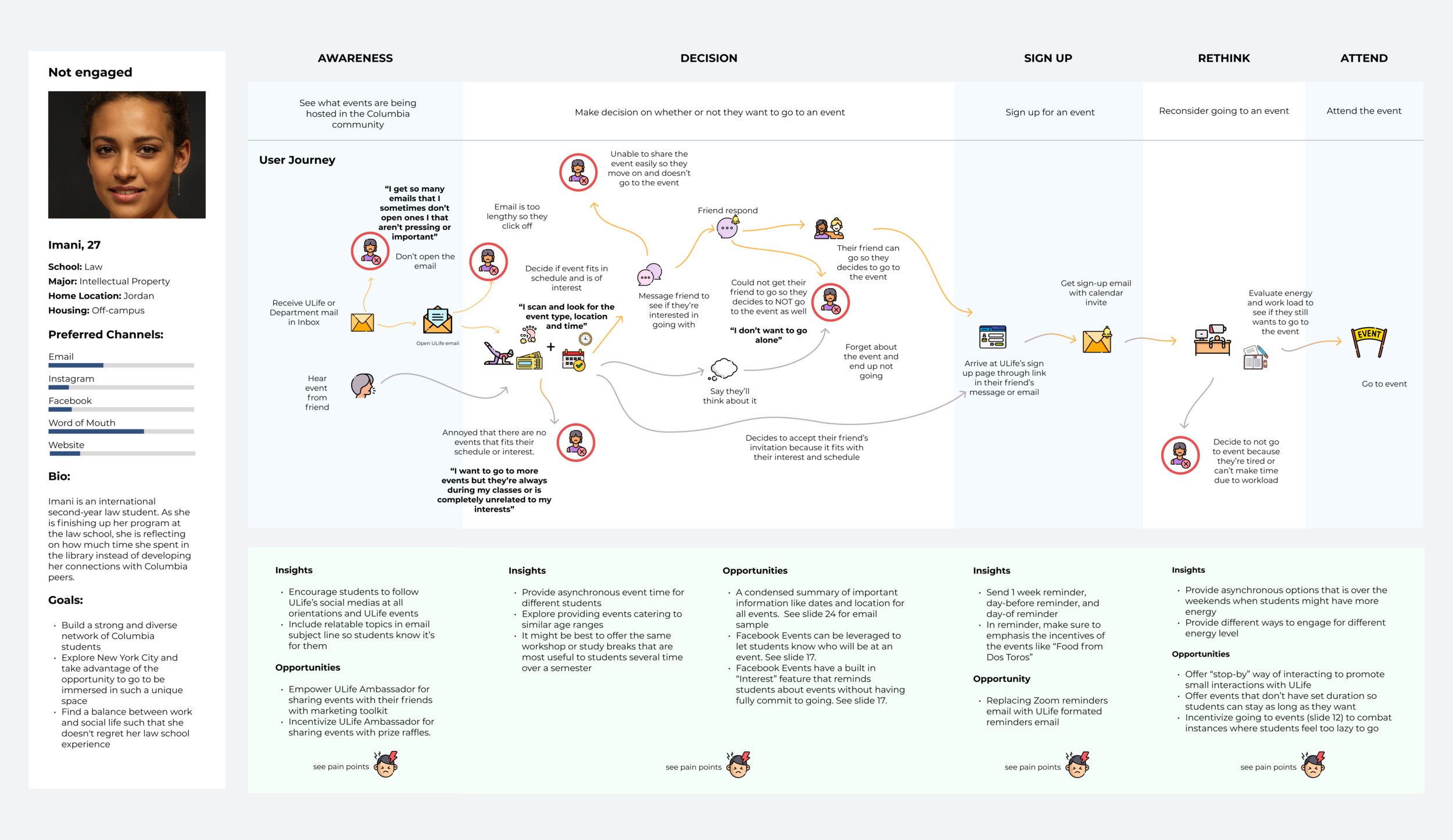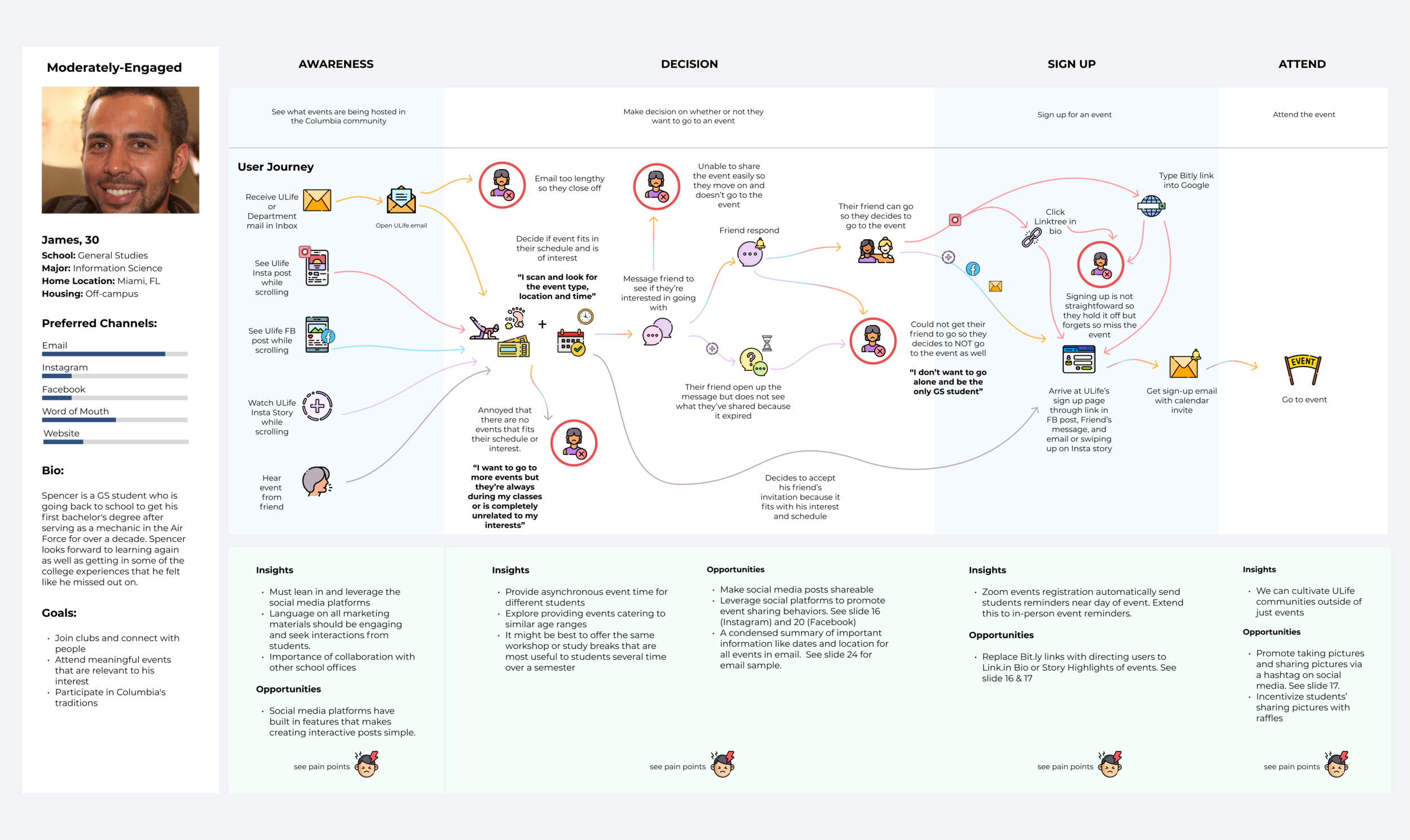 Since another enterprise-level project at Columbia required us to map out the student journey, we partnered with ULife during the interviews to collect other features of the student experience.